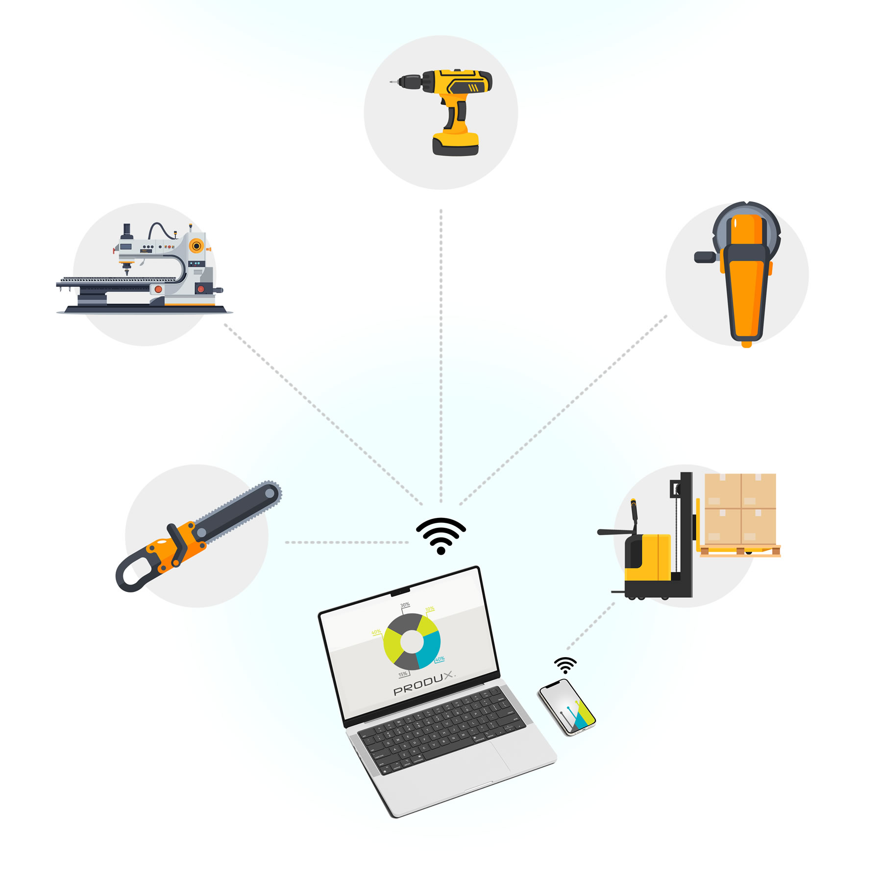 Monitoramento em tempo real das máquinas da indústria. Controle em tempo real de paradas, retrabalhos, utilização dos tempos, eficiência e produtividade.